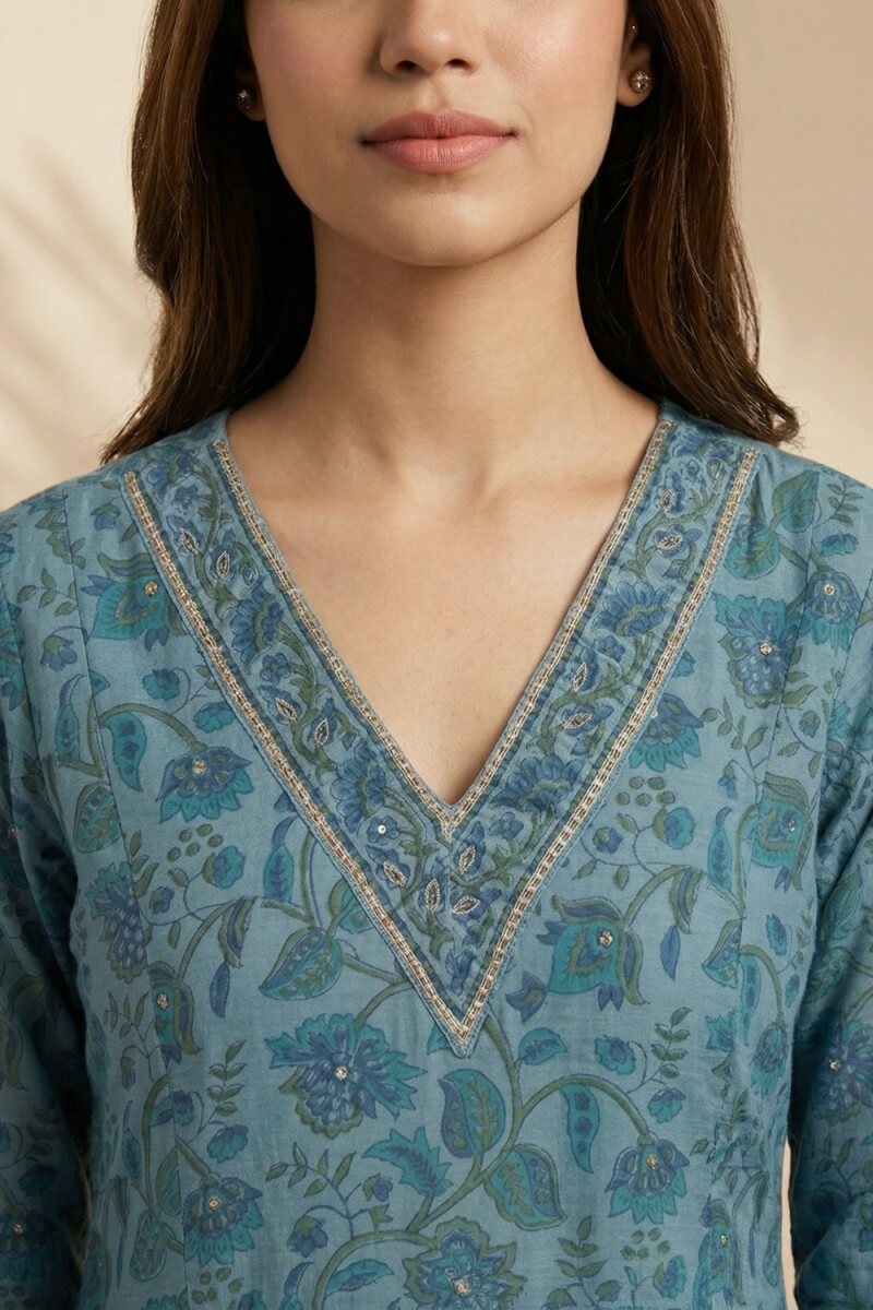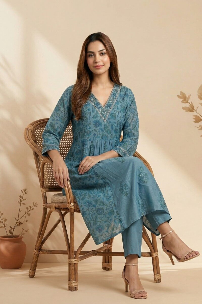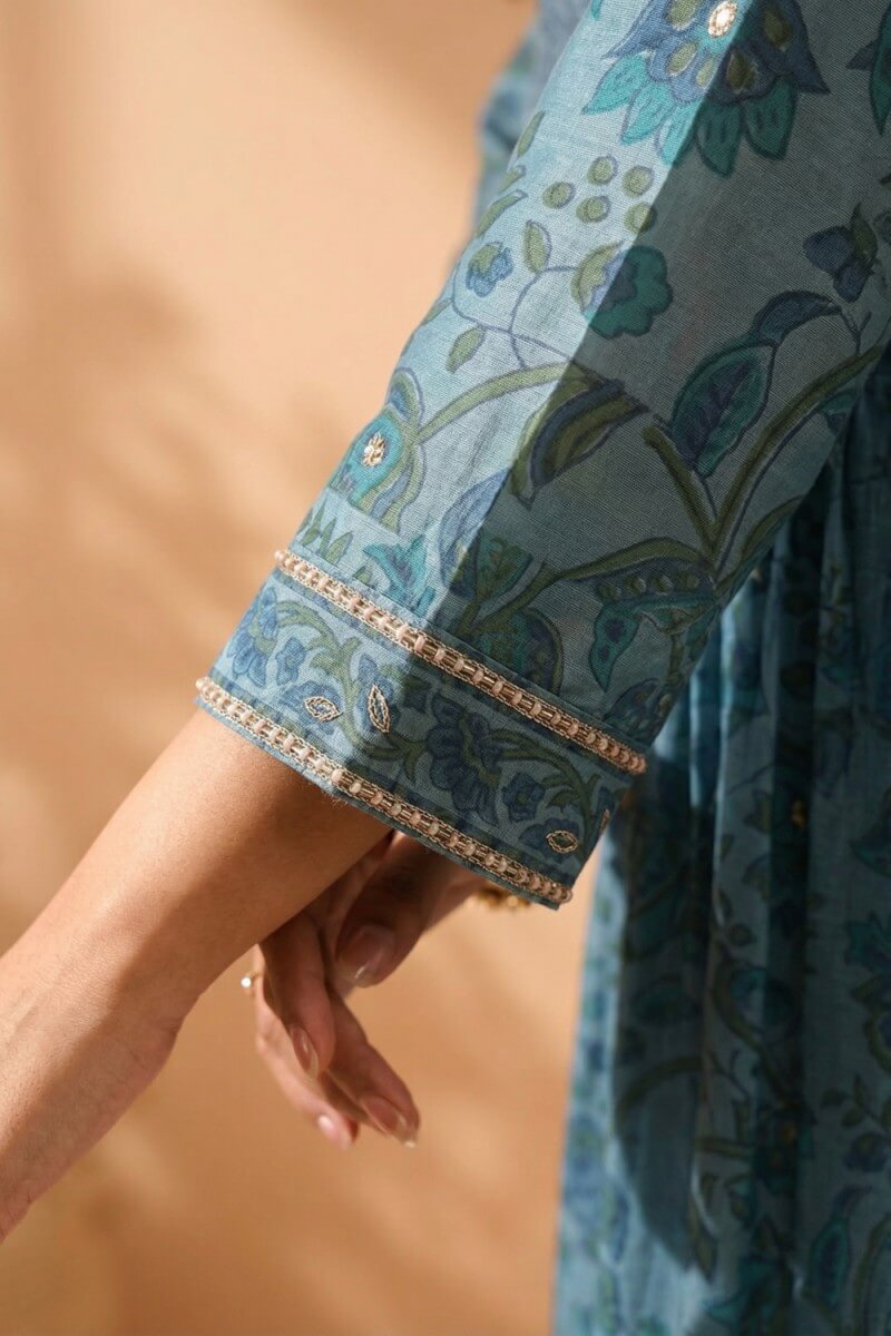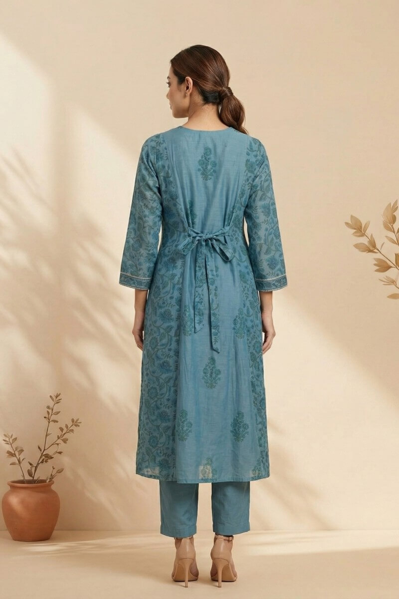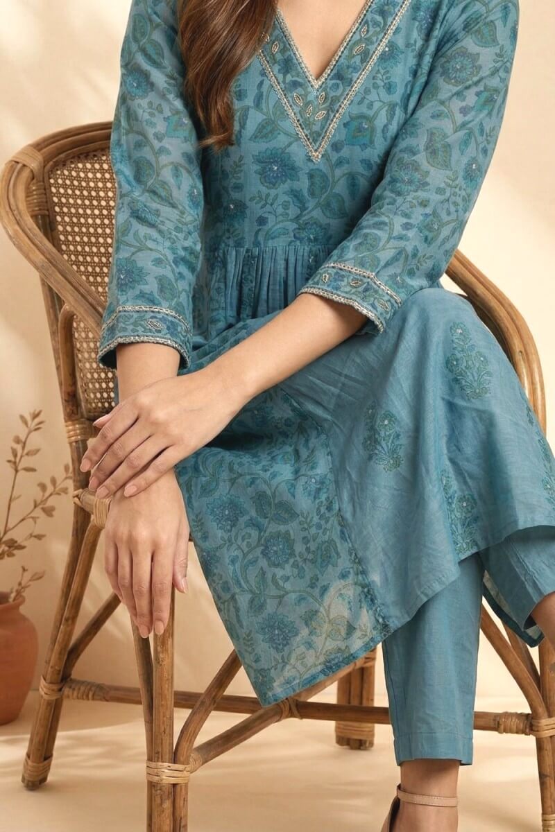 Azure Bloom Handcrafted Chanderi Co-ord Set
