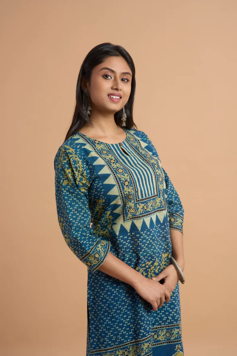 Hand Ajrakh Print – Indigo Cotton Kurta