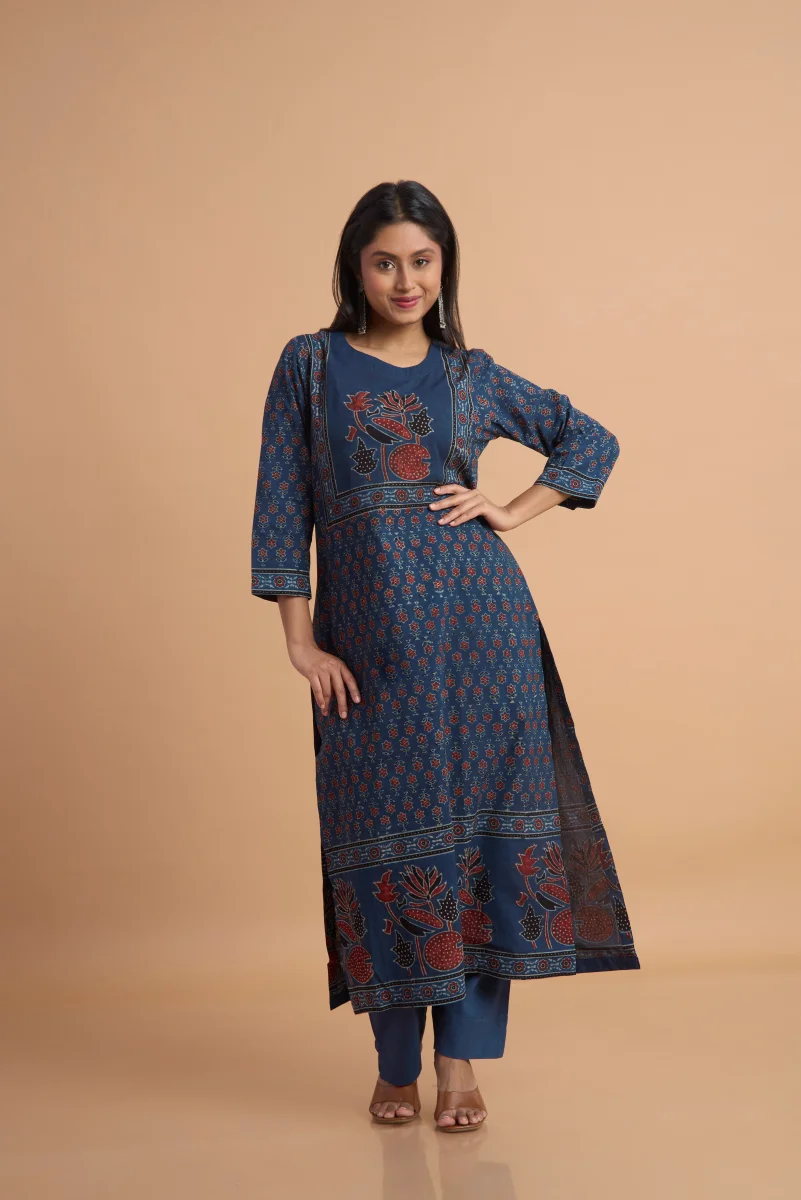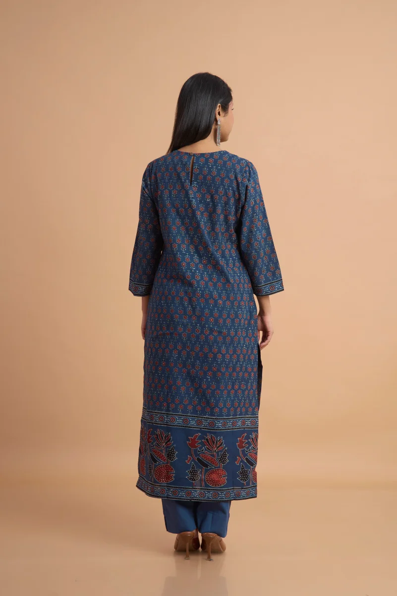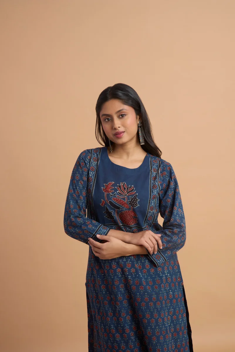Hand Ajrakh Print – Indigo Cotton Kurta