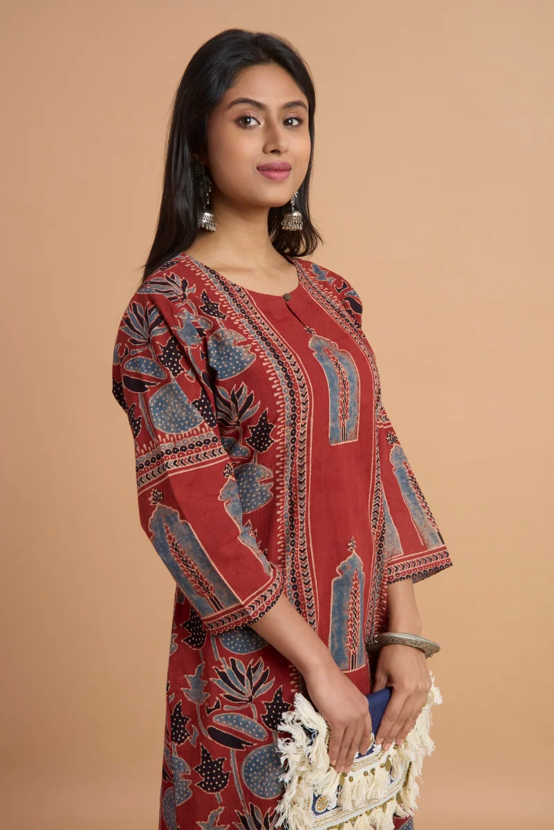Hand Ajrakh Print – Maroon Cotton Kurta