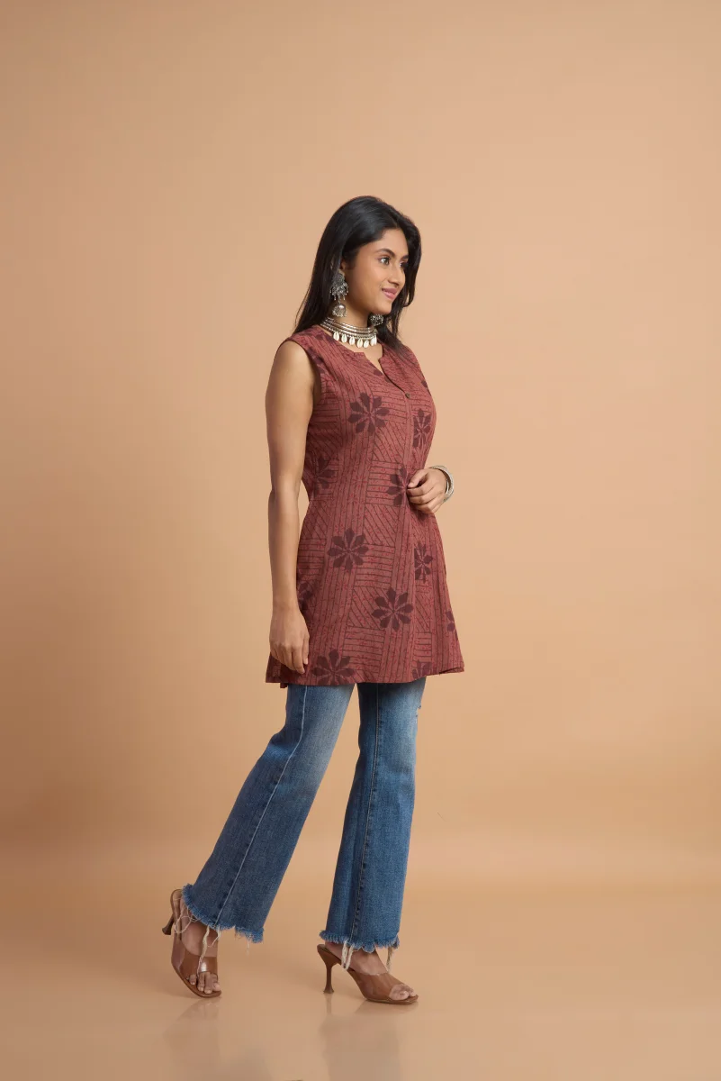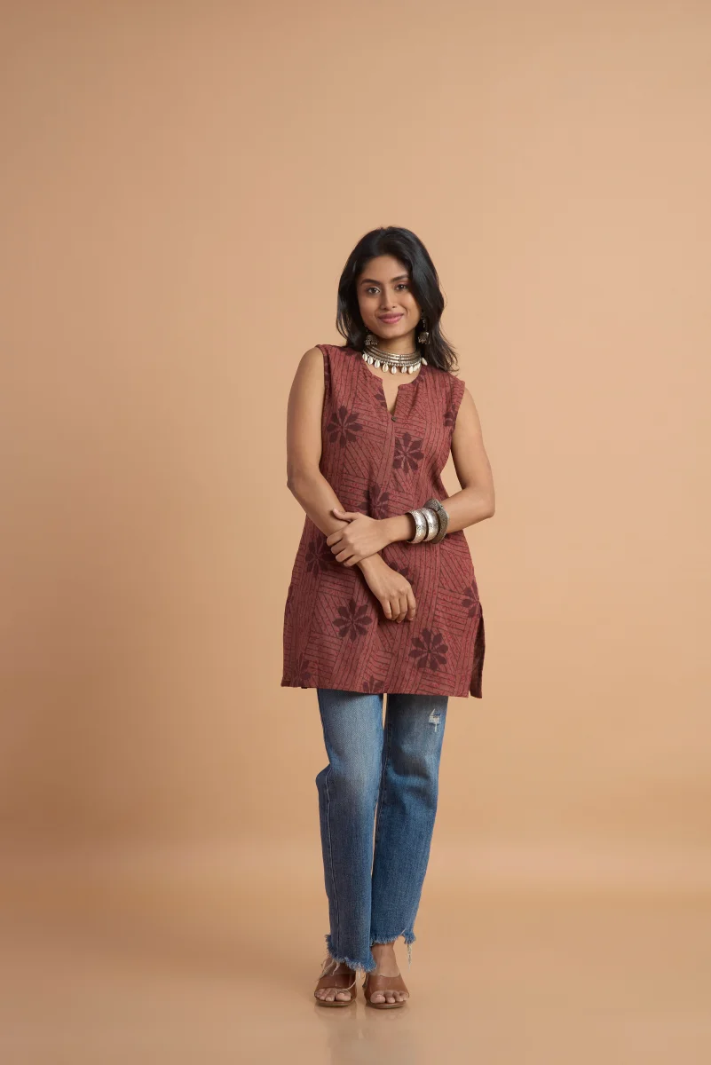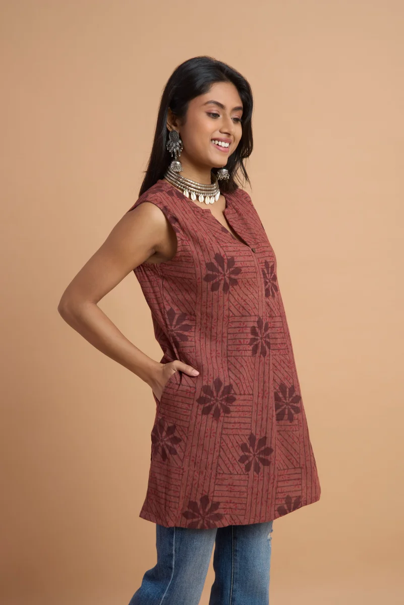 Hand Block Printed – Sleeveless Tunic Top