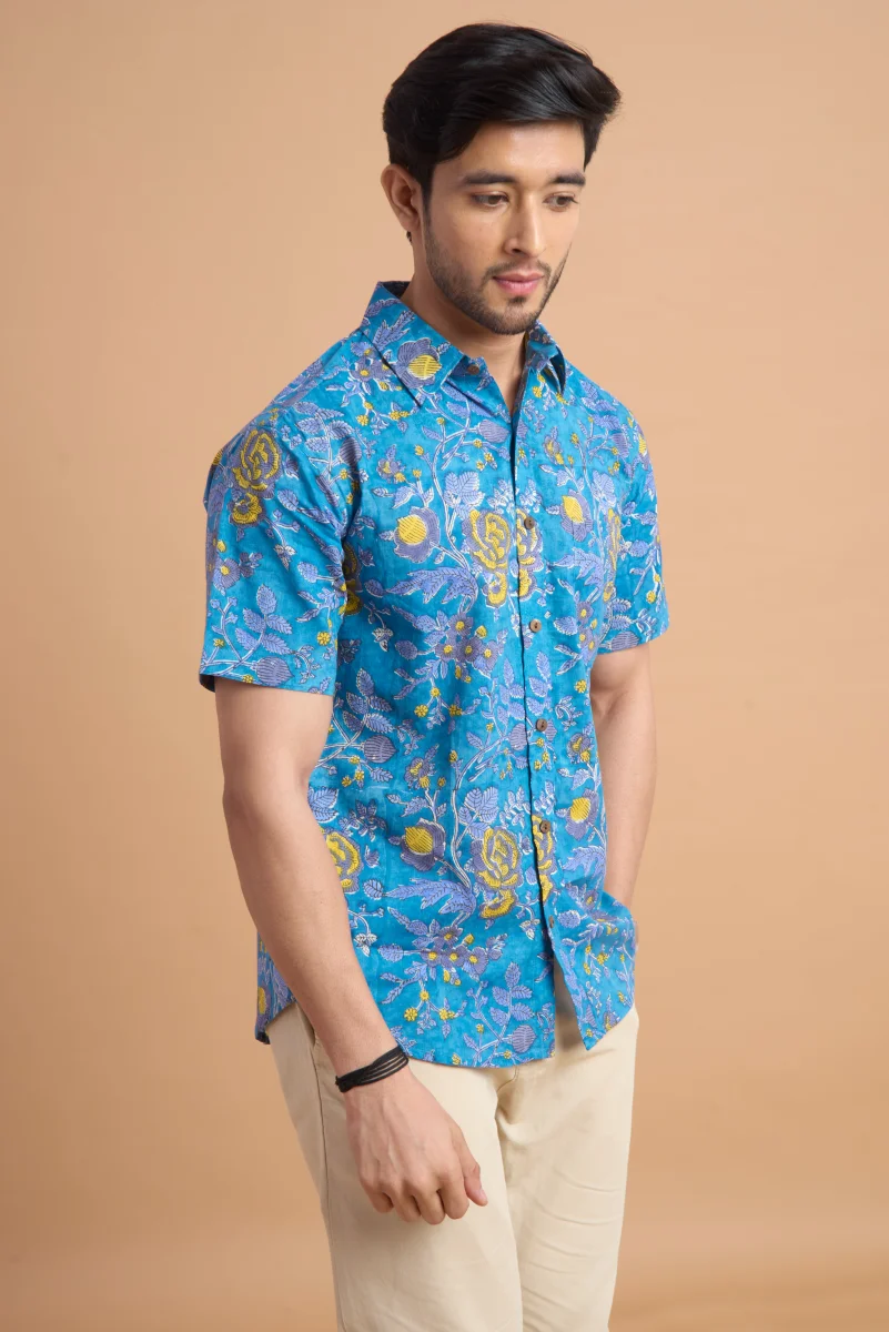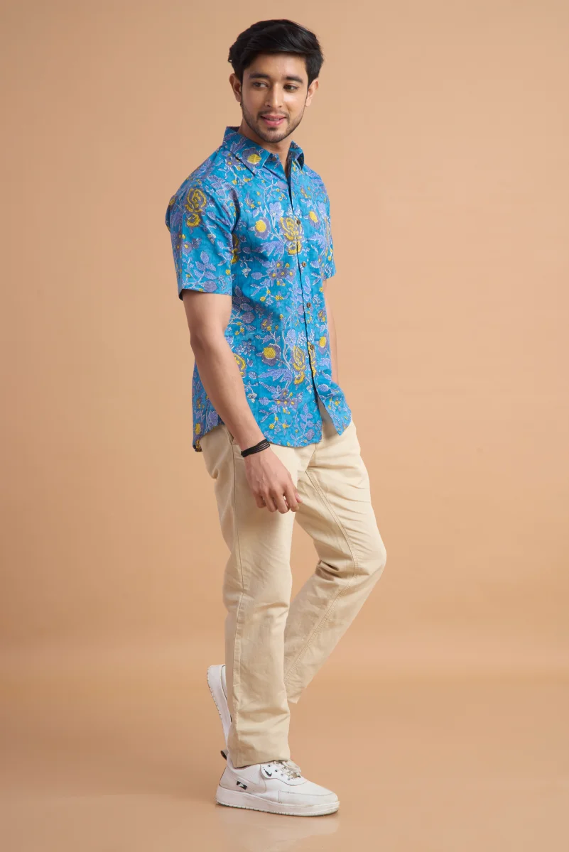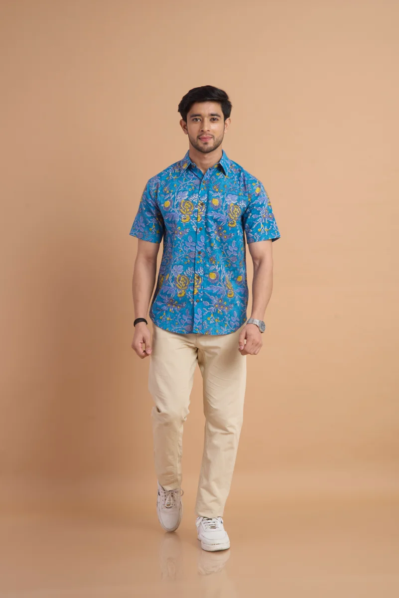 Featuring traditional hand block printing, this shirt showcases intricate patterns that reflect timeless craftsmanship and cultural elegance. Designed with a classic button-down front, a neat collar, and a relaxed yet structured fit, it effortlessly blends comfort with distinctive style. Ideal for casual outings, vacations, and laid-back gatherings, this shirt pairs effortlessly with jeans or chinos for a relaxed, stylish look.