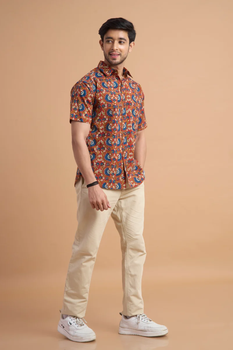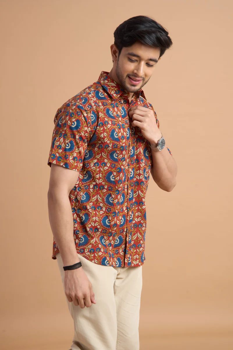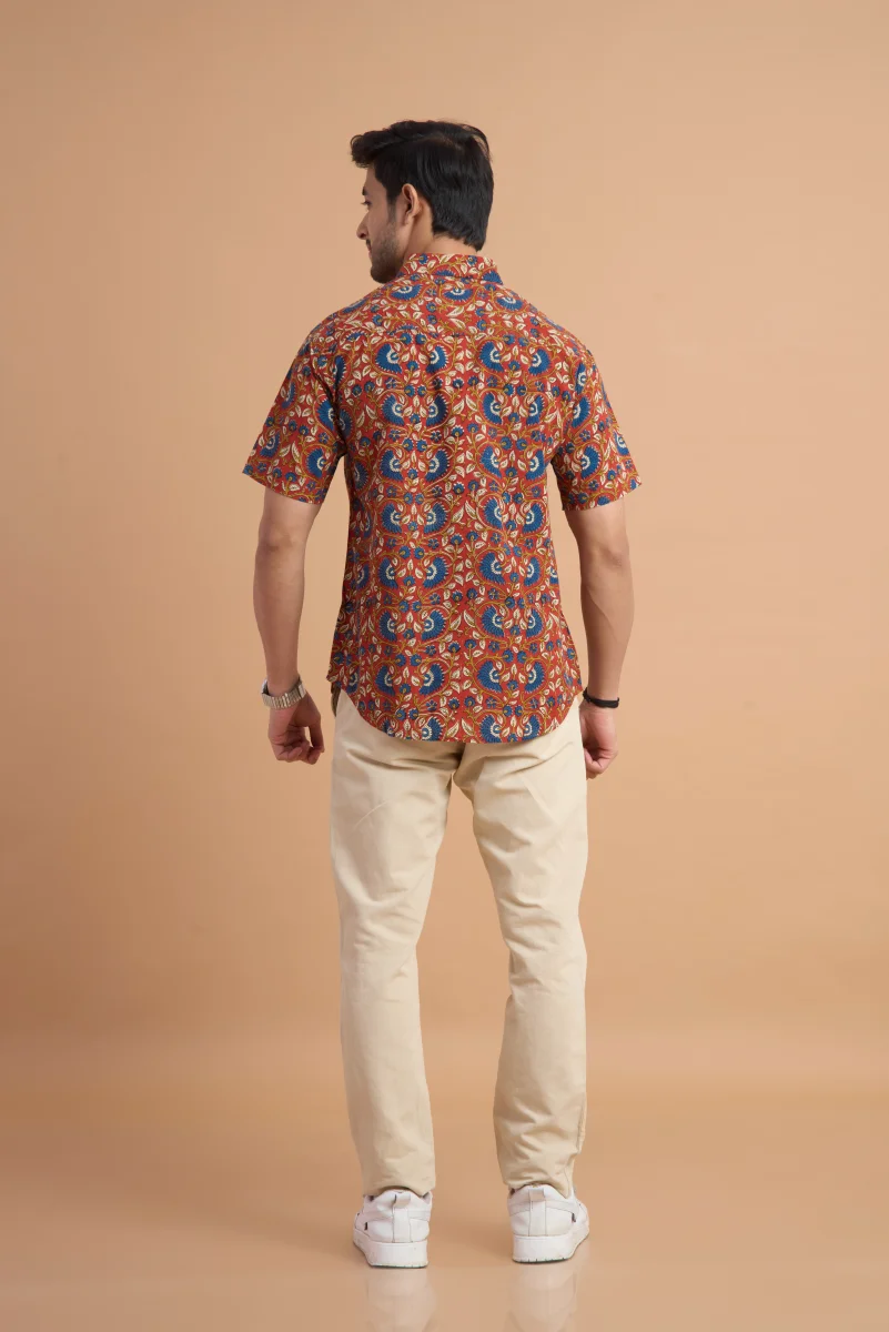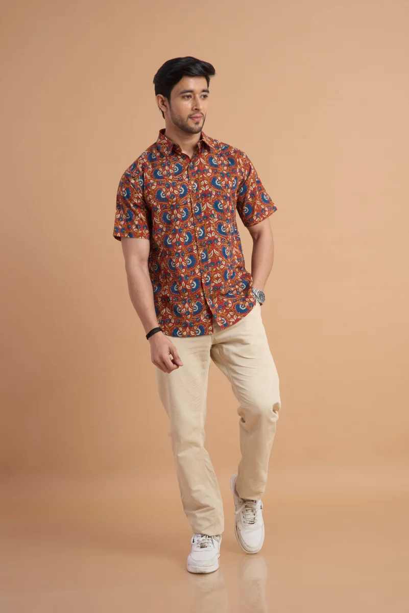 Featuring traditional hand block printing, this shirt showcases intricate patterns that reflect timeless craftsmanship and cultural elegance. Designed with a classic button-down front, a neat collar, and a relaxed yet structured fit, it effortlessly blends comfort with distinctive style. Ideal for casual outings, vacations, and laid-back gatherings, this shirt pairs effortlessly with jeans or chinos for a relaxed, stylish look.