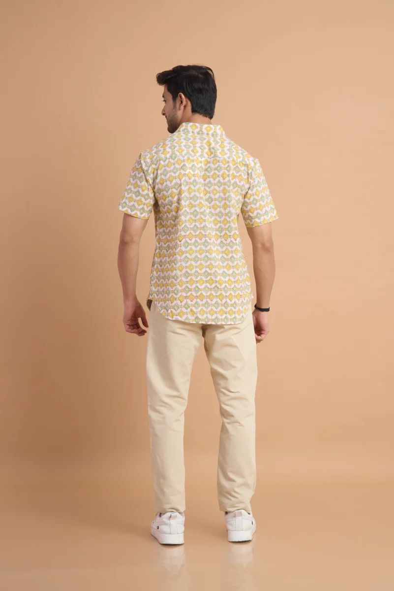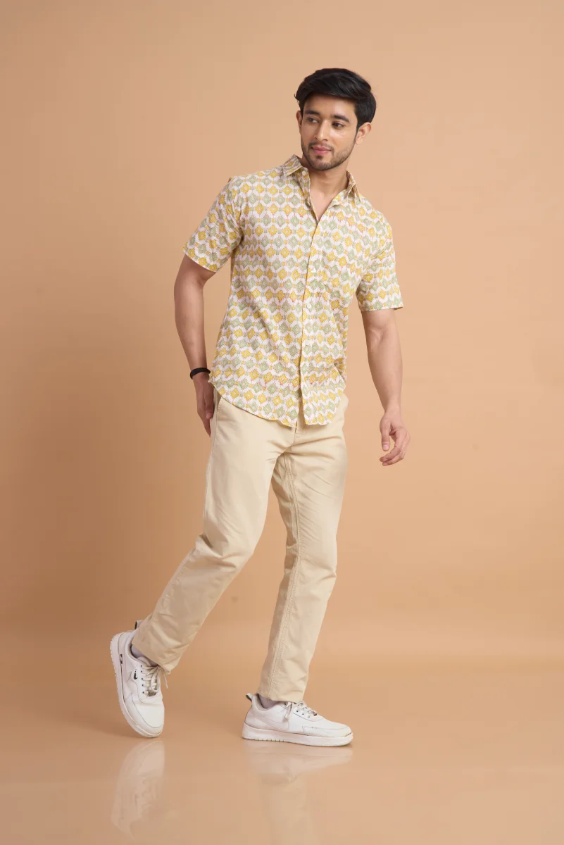 Featuring traditional hand block printing, this shirt showcases intricate patterns that reflect timeless craftsmanship and cultural elegance. Designed with a classic button-down front, a neat collar, and a relaxed yet structured fit, it effortlessly blends comfort with distinctive style. Ideal for casual outings, vacations, and laid-back gatherings, this shirt pairs effortlessly with jeans or chinos for a relaxed, stylish look.