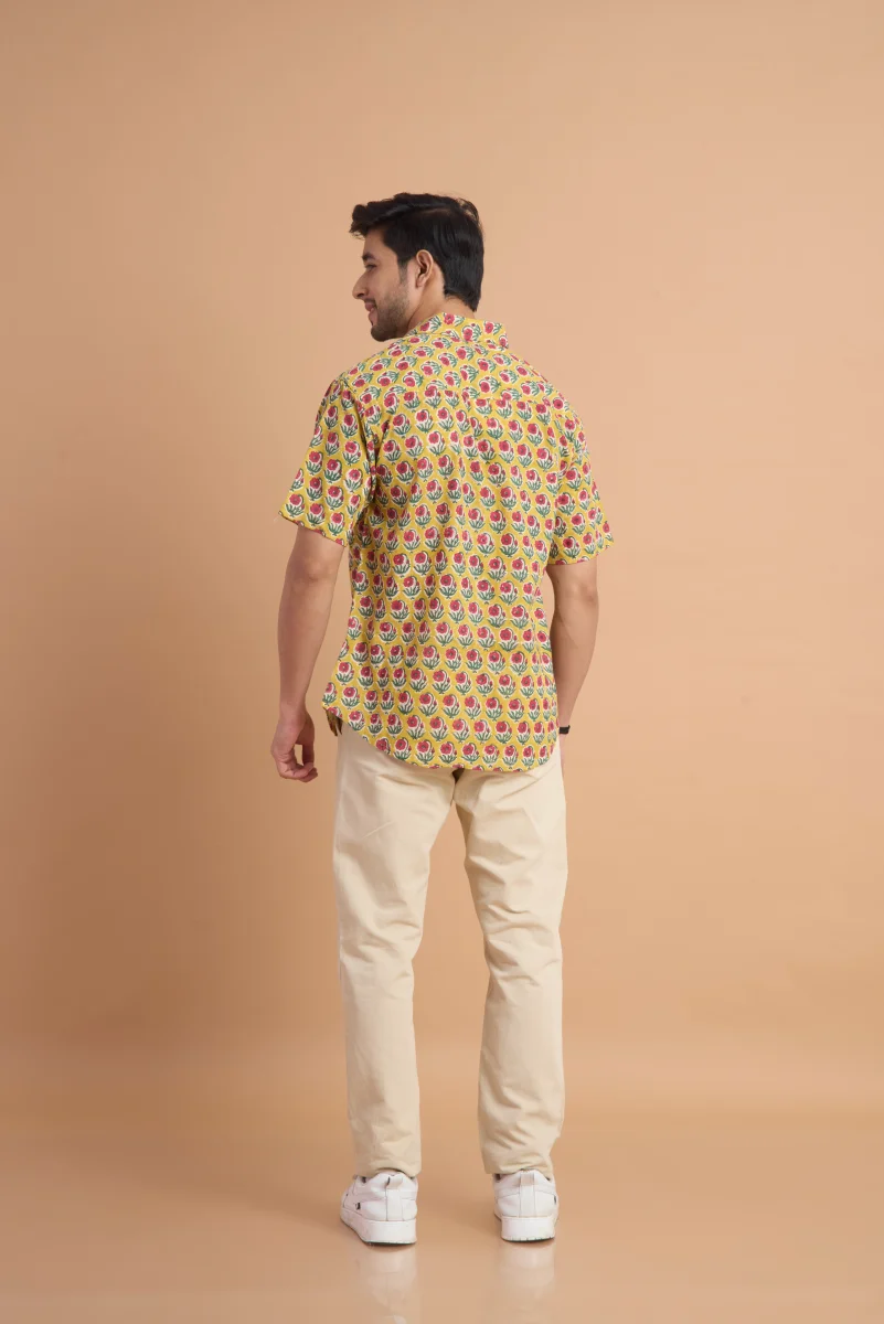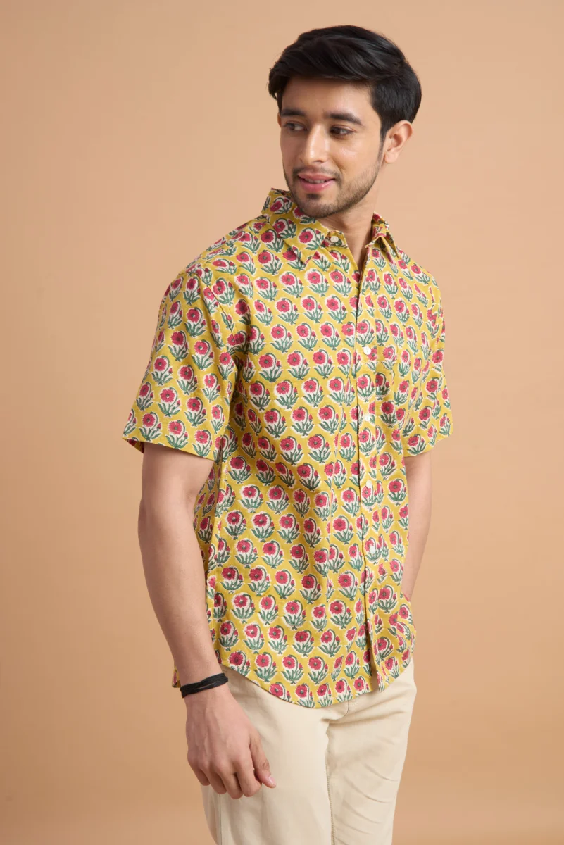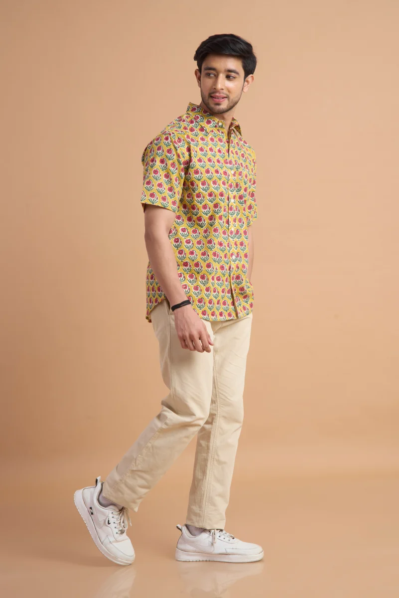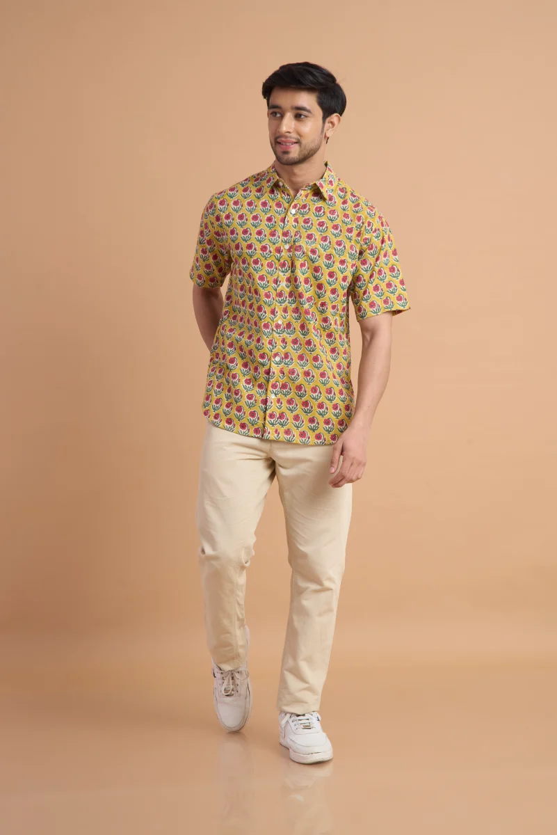 Featuring traditional hand block printing, this shirt showcases intricate patterns that reflect timeless craftsmanship and cultural elegance. Designed with a classic button-down front, a neat collar, and a relaxed yet structured fit, it effortlessly blends comfort with distinctive style. Ideal for casual outings, vacations, and laid-back gatherings, this shirt pairs effortlessly with jeans or chinos for a relaxed, stylish look.