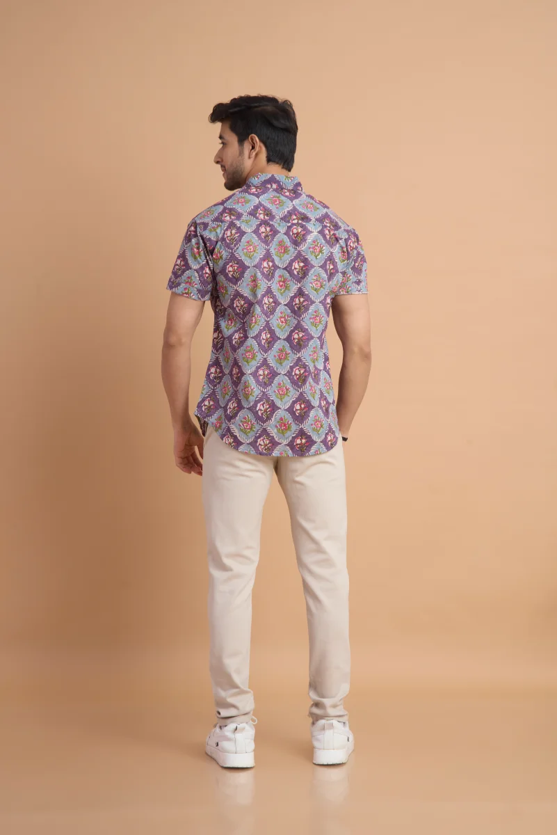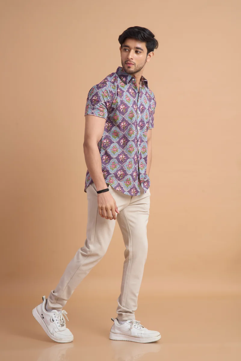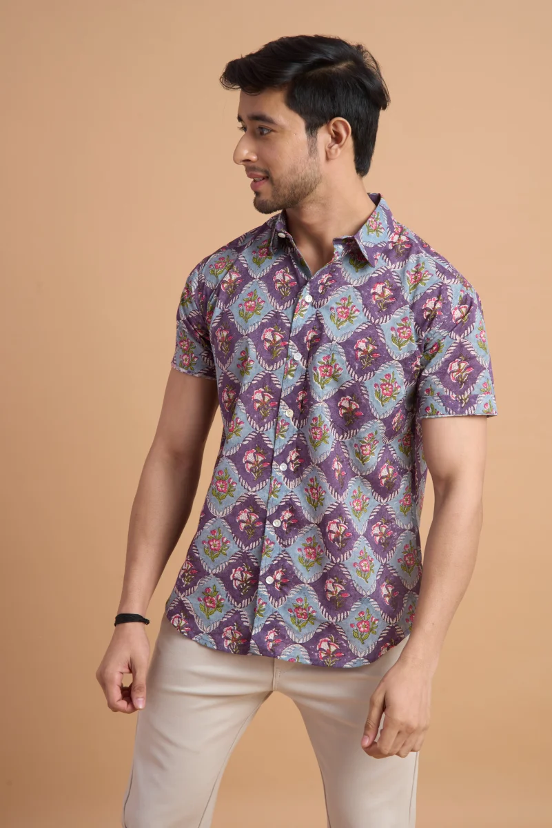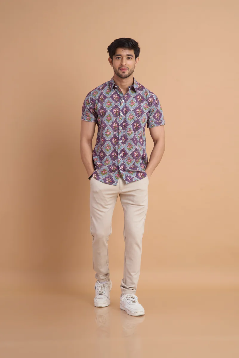 Featuring traditional hand block printing, this shirt showcases intricate patterns that reflect timeless craftsmanship and cultural elegance. Designed with a classic button-down front, a neat collar, and a relaxed yet structured fit, it effortlessly blends comfort with distinctive style. Ideal for casual outings, vacations, and laid-back gatherings, this shirt pairs effortlessly with jeans or chinos for a relaxed, stylish look.