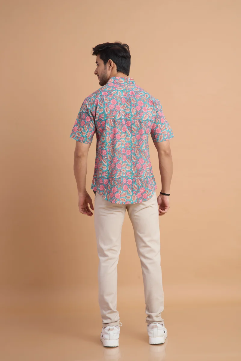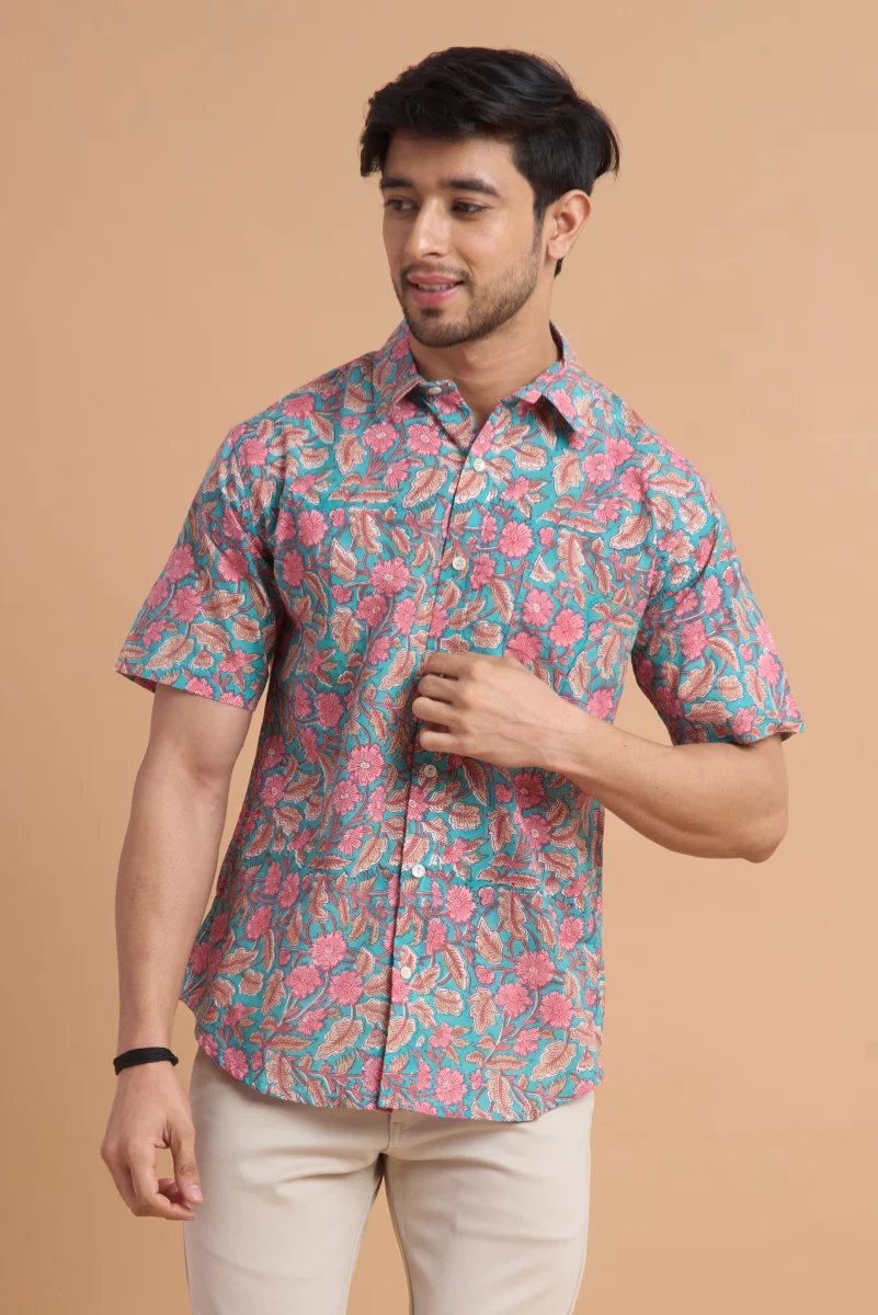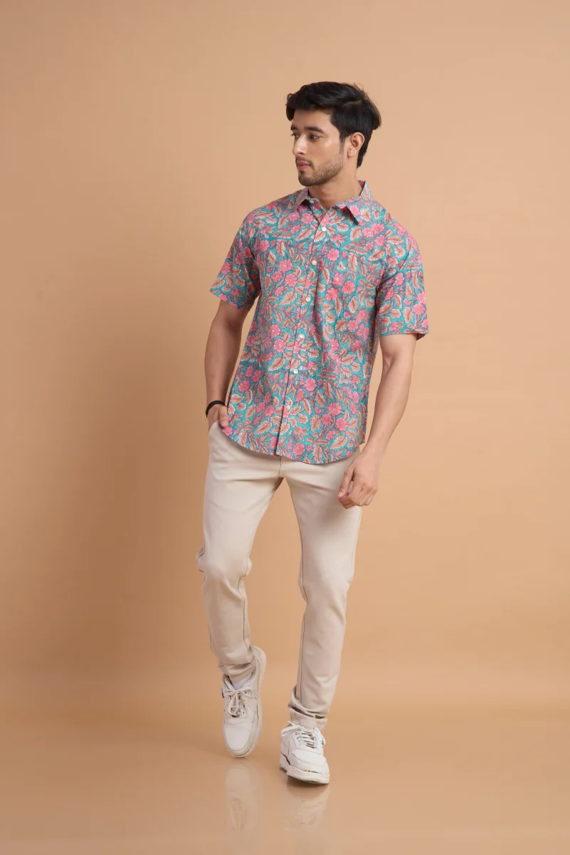 Featuring traditional hand block printing, this shirt showcases intricate patterns that reflect timeless craftsmanship and cultural elegance. Designed with a classic button-down front, a neat collar, and a relaxed yet structured fit, it effortlessly blends comfort with distinctive style. Ideal for casual outings, vacations, and laid-back gatherings, this shirt pairs effortlessly with jeans or chinos for a relaxed, stylish look.