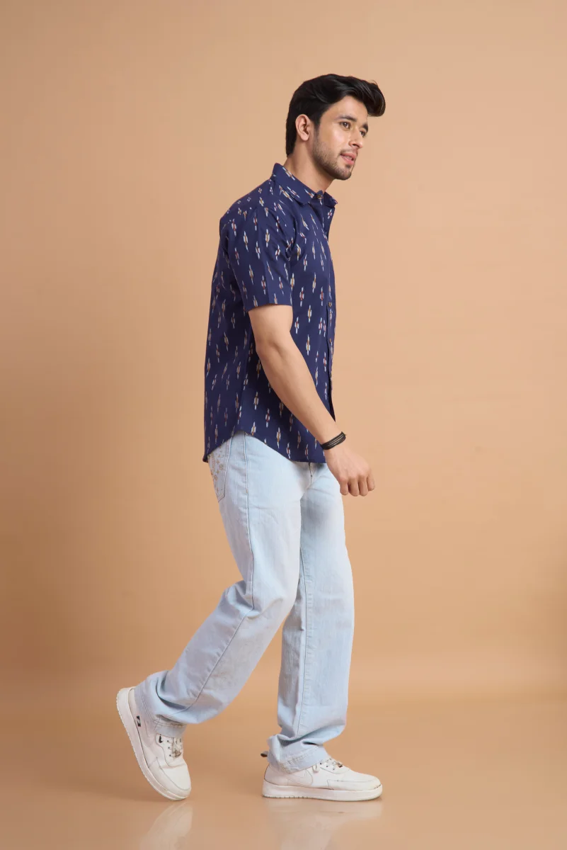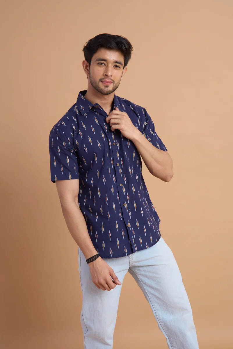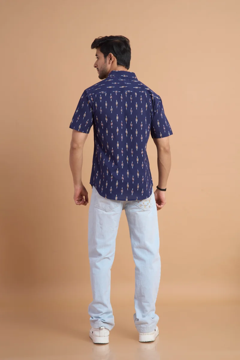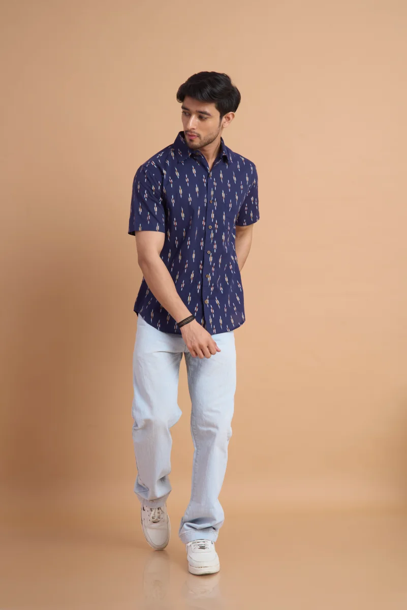 Featuring traditional hand block printing, this shirt showcases intricate patterns that reflect timeless craftsmanship and cultural elegance. Designed with a classic button-down front, a neat collar, and a relaxed yet structured fit, it effortlessly blends comfort with distinctive style. Ideal for casual outings, vacations, and laid-back gatherings, this shirt pairs effortlessly with jeans or chinos for a relaxed, stylish look.