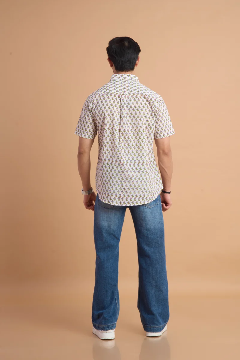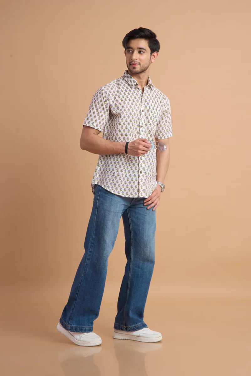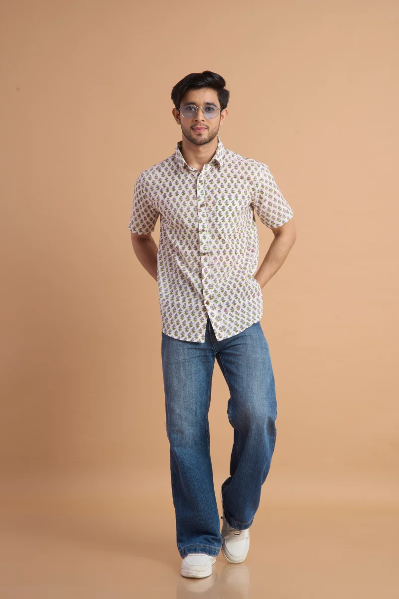 Featuring traditional hand block printing, this shirt showcases intricate patterns that reflect timeless craftsmanship and cultural elegance. Designed with a classic button-down front, a neat collar, and a relaxed yet structured fit, it effortlessly blends comfort with distinctive style. Ideal for casual outings, vacations, and laid-back gatherings, this shirt pairs effortlessly with jeans or chinos for a relaxed, stylish look.