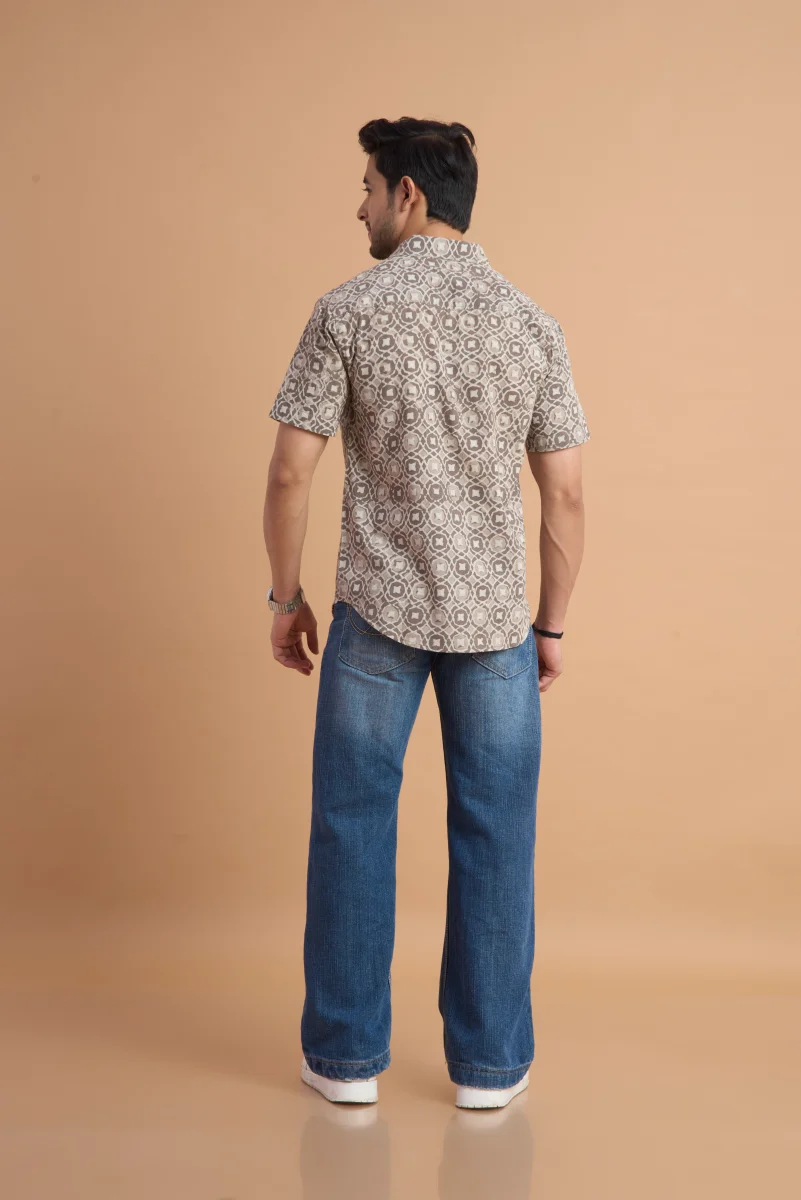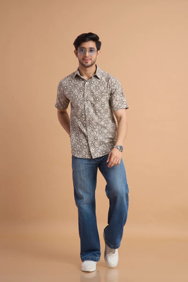 Featuring traditional hand block printing, this shirt showcases intricate patterns that reflect timeless craftsmanship and cultural elegance. Designed with a classic button-down front, a neat collar, and a relaxed yet structured fit, it effortlessly blends comfort with distinctive style. Ideal for casual outings, vacations, and laid-back gatherings, this shirt pairs effortlessly with jeans or chinos for a relaxed, stylish look.