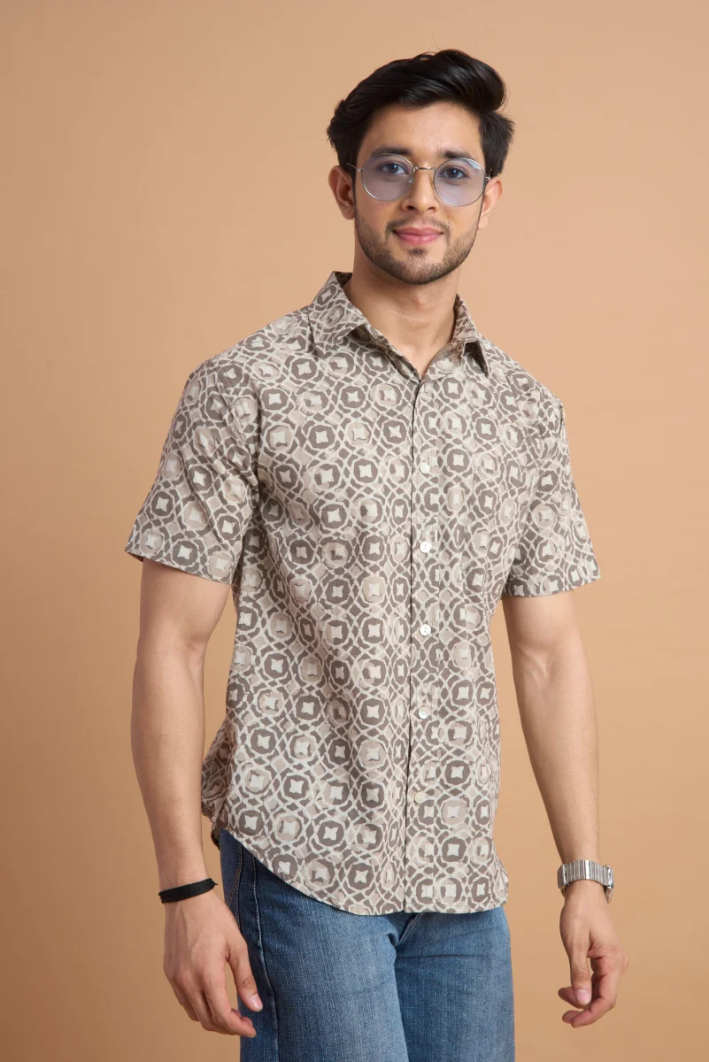 Add a touch of artisanal charm to your wardrobe with this Hand Block Print Cotton Half Sleeve Shirt, crafted from 100% pure cotton for all-day comfort and breathability. The natural cotton fabric feels soft on the skin while ensuring excellent airflow, making it perfect for warm-weather wear.