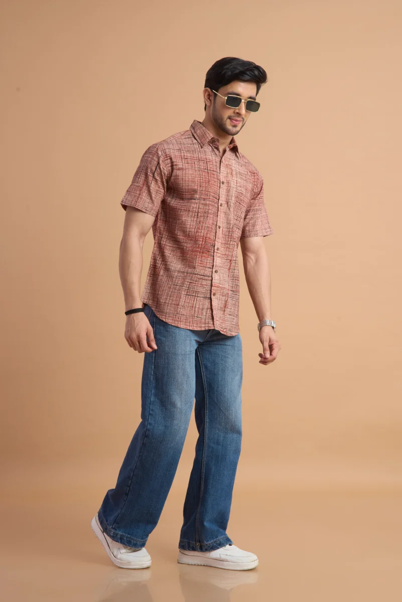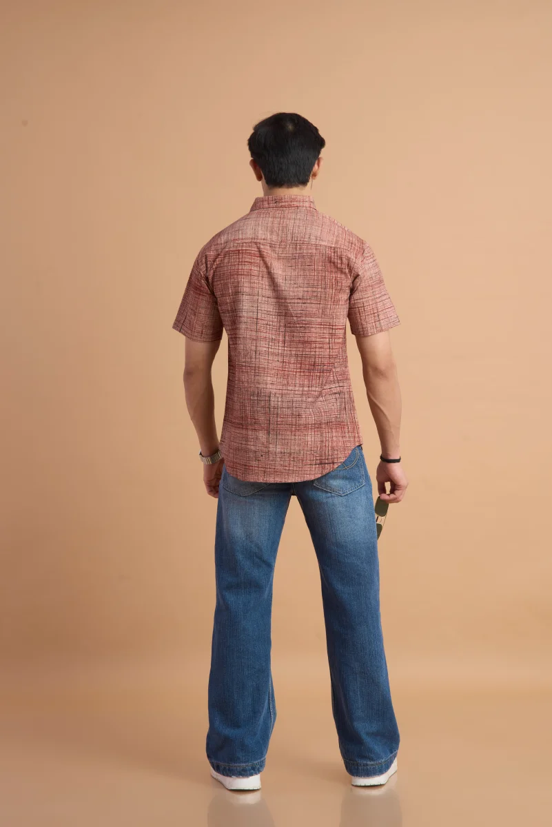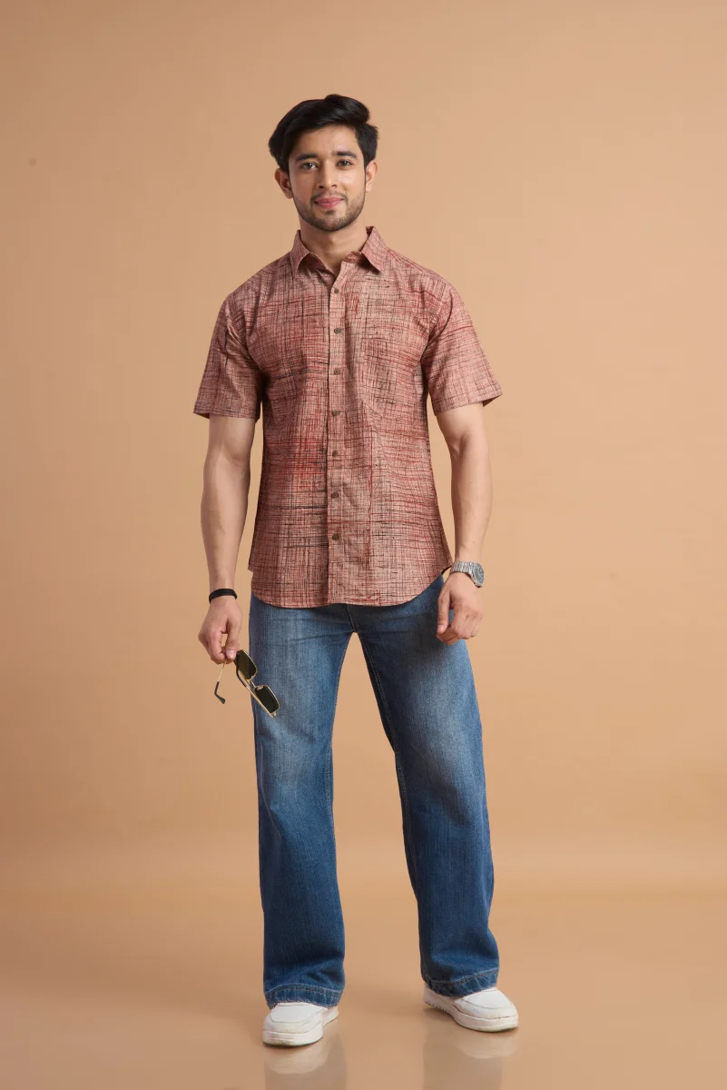 Elevate your everyday style with this refined Half Sleeves Kala Cotton Shirt, crafted from 100% hand-woven Kala Cotton for unmatched comfort and sustainability. Known for its durability and breathable nature, Kala Cotton offers a soft, lightweight feel that keeps you comfortable throughout the day. Designed in a rich earthy tone, this shirt features a clean button-down front, a structured collar, and a relaxed yet tailored fit that flatters effortlessly. The natural texture of the fabric adds subtle character, making it perfect for both casual outings and smart-casual occasions. Pair it with denim or chinos for a timeless, eco-conscious look.