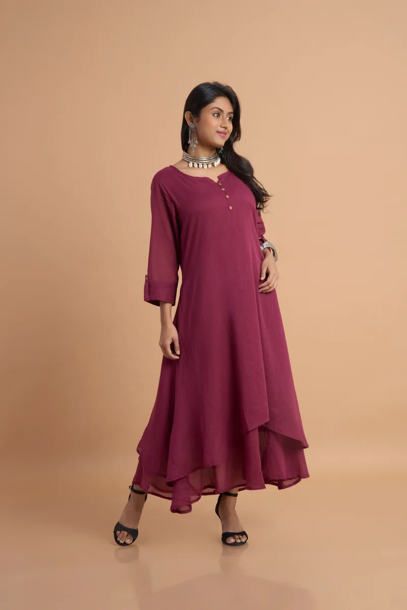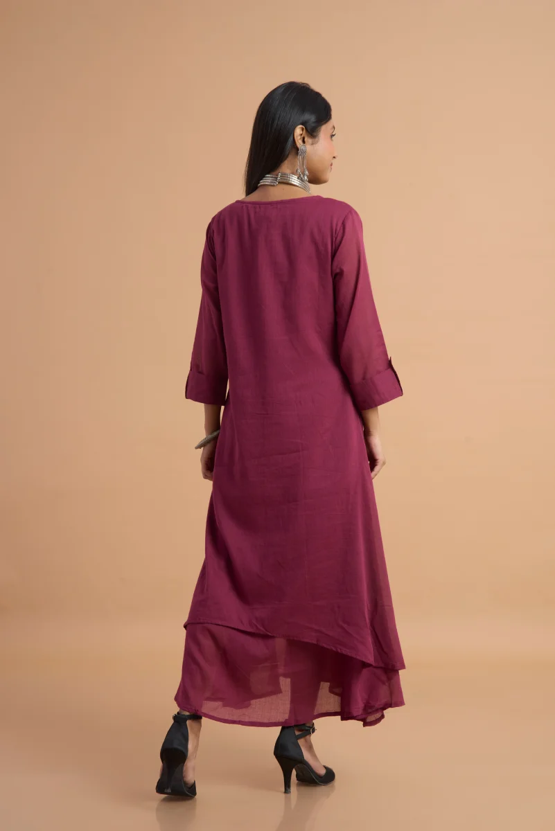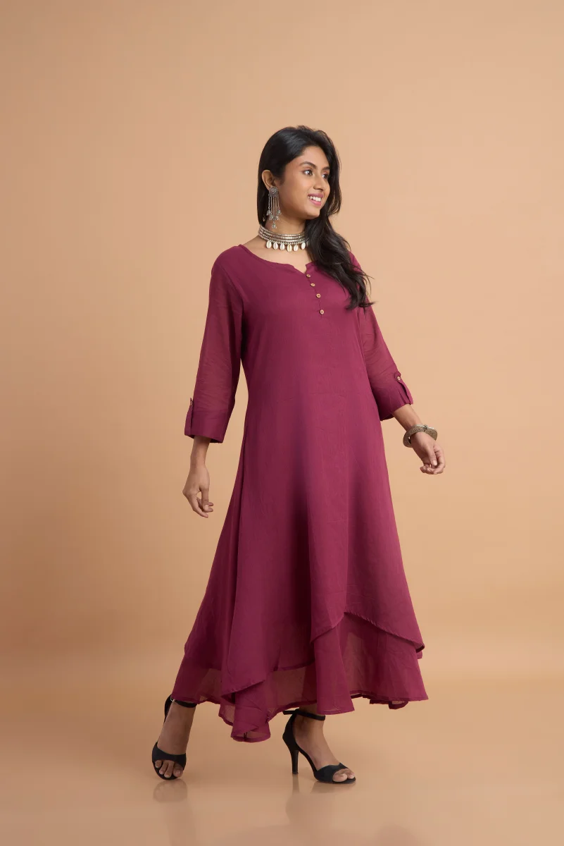 Maroon Aura Double-Layered Cotton Dress
