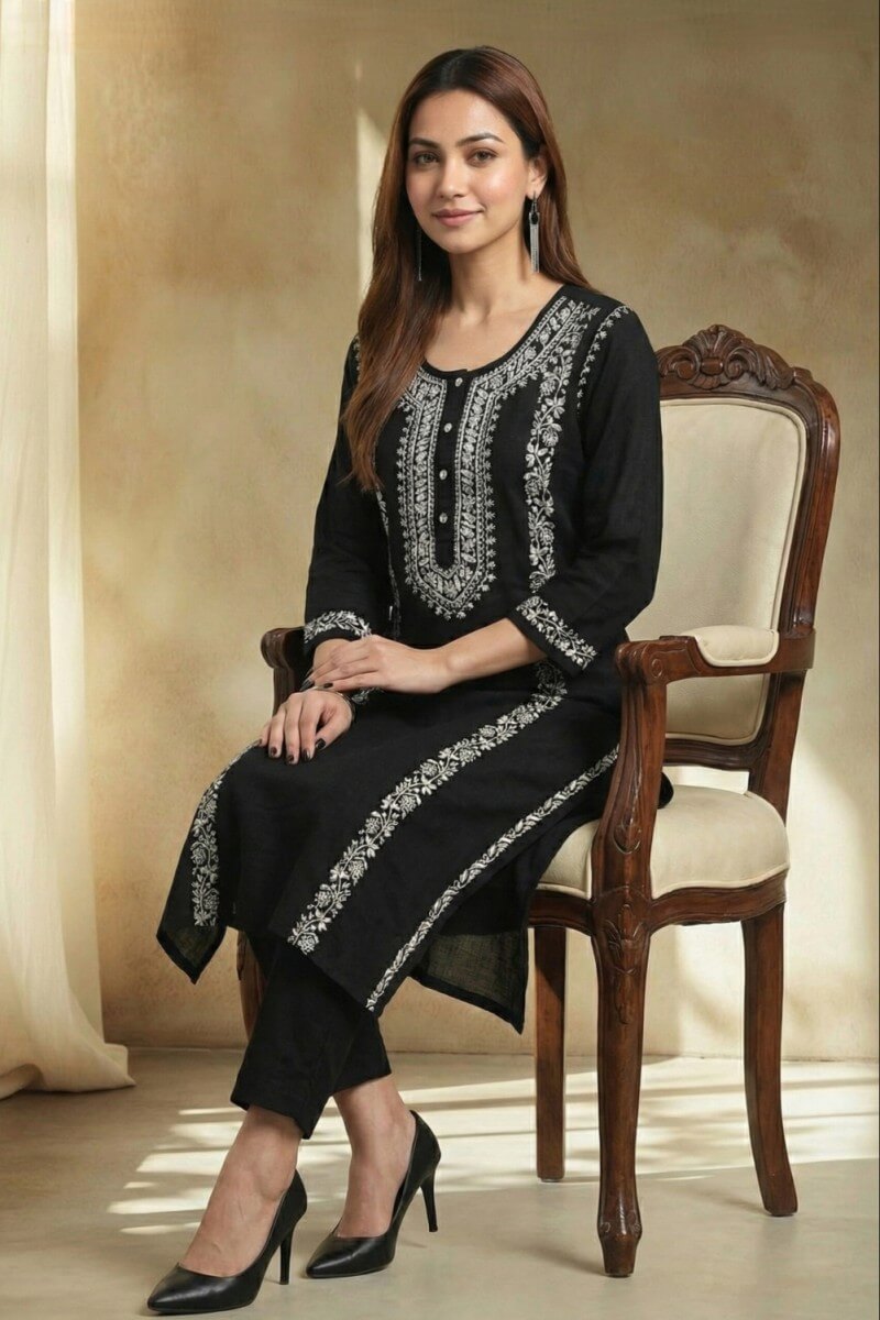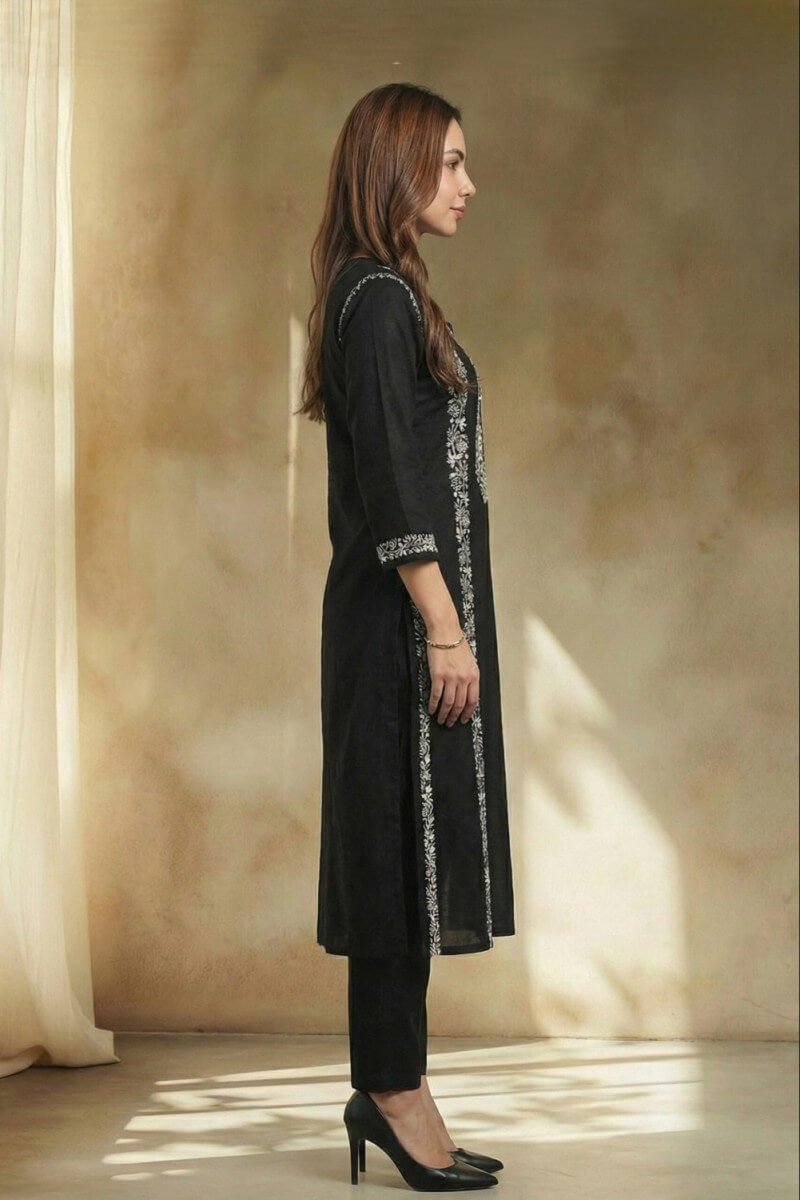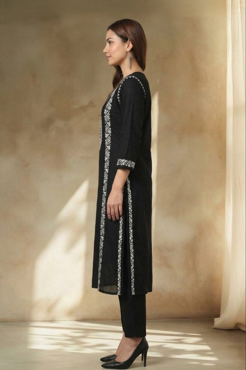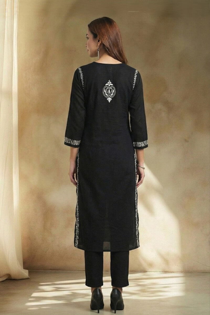 Noir Elegance Hand Chikankari Cotton Kurta Set