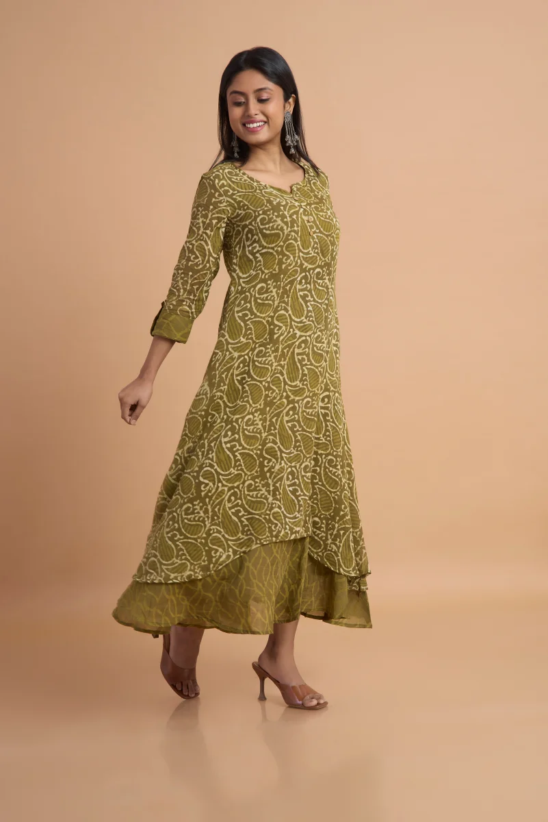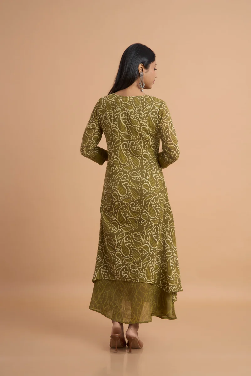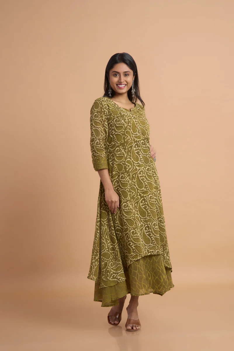 Olive Noor Hand Block Print Double-Layered Cotton Kurti